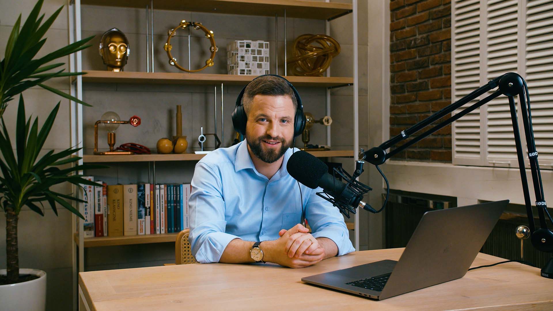 We offer full podcast production in our Warsaw studio, complete with custom set design tailored to your vision. Learn more about our studio here.