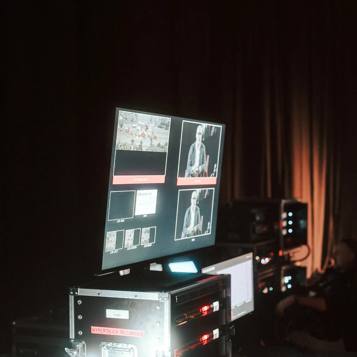 Niezależnie od tego, czy potrzebujesz pojedynczego ekranu na spotkanie, czy dużej ściany LED na wydarzenie, mamy dla Ciebie odpowiednie rozwiązanie. Nasze ekrany doskonale sprawdzą się do transmisji na żywo, prezentacji, materiałów sponsorów lub wszystkiego, co chcesz wyeksponować w centralnym miejscu. Oferujemy także monitory sceniczne oraz promptery, aby Twoja produkcja przebiegała bez zakłóceń.